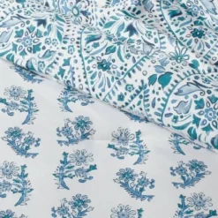 The Bancroft Reversible Paisley-Print Comforter & Sheet Bedding Set from Threshold™ includes everything you need to create the bedding ensemble of your dreams. The comforter features a beautiful paisley print in blue shades on a white background that reverses to a floral pattern in a complementing color palette, making for a striking and easy-to-switch-up look that’s perfect for any bedroom decor. The 12-piece bedding set comes with pillow shams, decorative pillows, sheet sets and a bedskirt for a complete look. For added convenience, the multi-piece comforter bedding set boasts a year-round fabric construction that is machine washable.