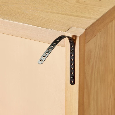 Make a practical addition to your home decor with the Grooved Wood with Glass 2-Door Storage Cabinet from Hearth & Handâ„¢ with Magnolia. Made with wood and designed with clean lines, this natural-shade storage cabinet features a grooved interior for textured charm. Plus, it closes with glass doors to make it easy to see what’s inside. You can use this wooden storage cabinet in your living room, dining room or any other spot to display your storage baskets, photos, books and other items.